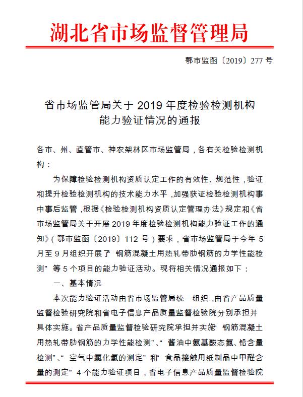 省市場監(jiān)管局關(guān)于2019年度檢驗(yàn)檢測機(jī)構(gòu) 能力驗(yàn)證情況的通報